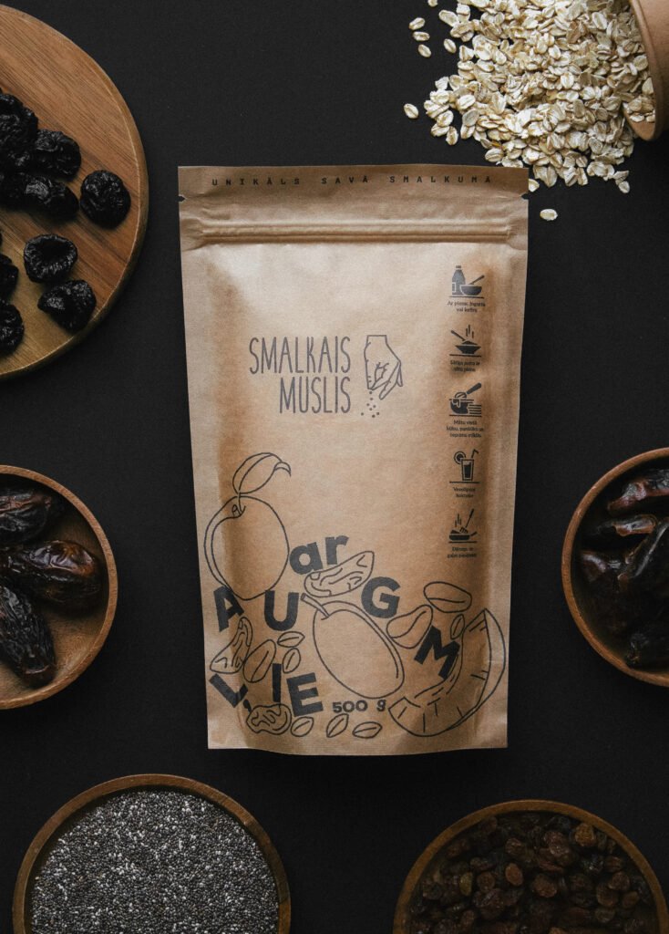 Smalkais muslis ir gards, sātīgs un veselīgs produkts bez papildus pievienota cukura. Saldumu tam piešķir augļi un ogas, kas kopā ar pilngraudu auzu pārslām tiek samaltas noteiktās proporcijās un konsistencē, radot funkcionālu produktu. To lieto gan kā klasisko brokastu musli, aplejot ar pienu, kefīru, bezpiedevu vai grieķu jogurtu, gan arī smūtijos, brokastu putrās, pankūku vai kūku mīklās u.c. desertos, izmantojot kā piedevu miltu vietā. Tas satur daudz šķiedrvielu un ogļhidrātu, spēj aizstāt saldumus, garšo bērniem, ideāls sportistiem, piemērots vegāniem un diabētiķiem, jo satur tikai dabīgos augļu un ogu cukurus.